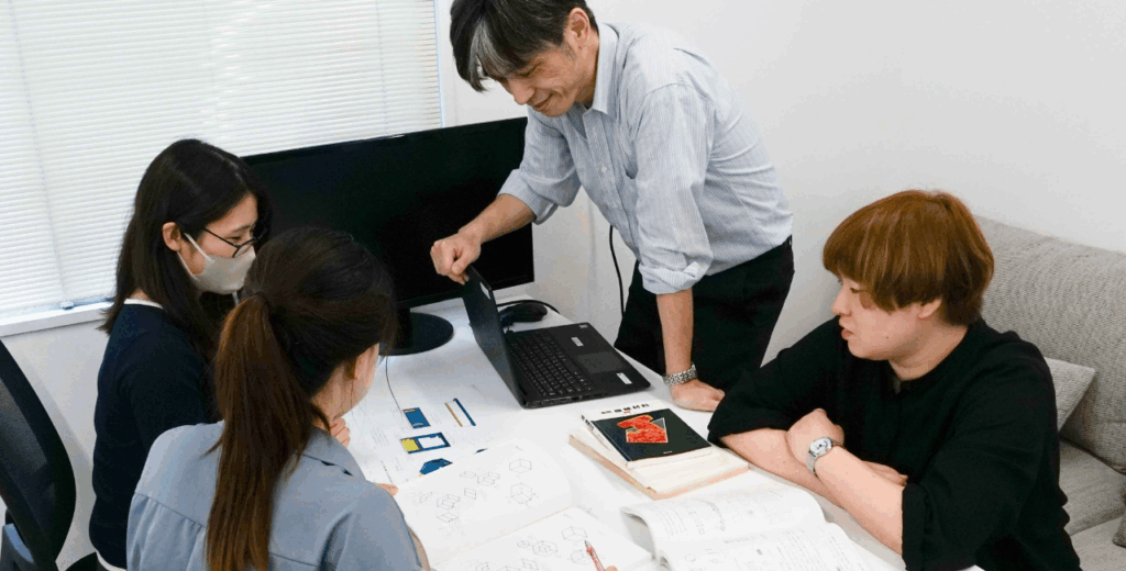 • 社内において、ビジネスマナーをはじめ、基礎製図学、2次元CAD、3次元CADと研修を進めます。